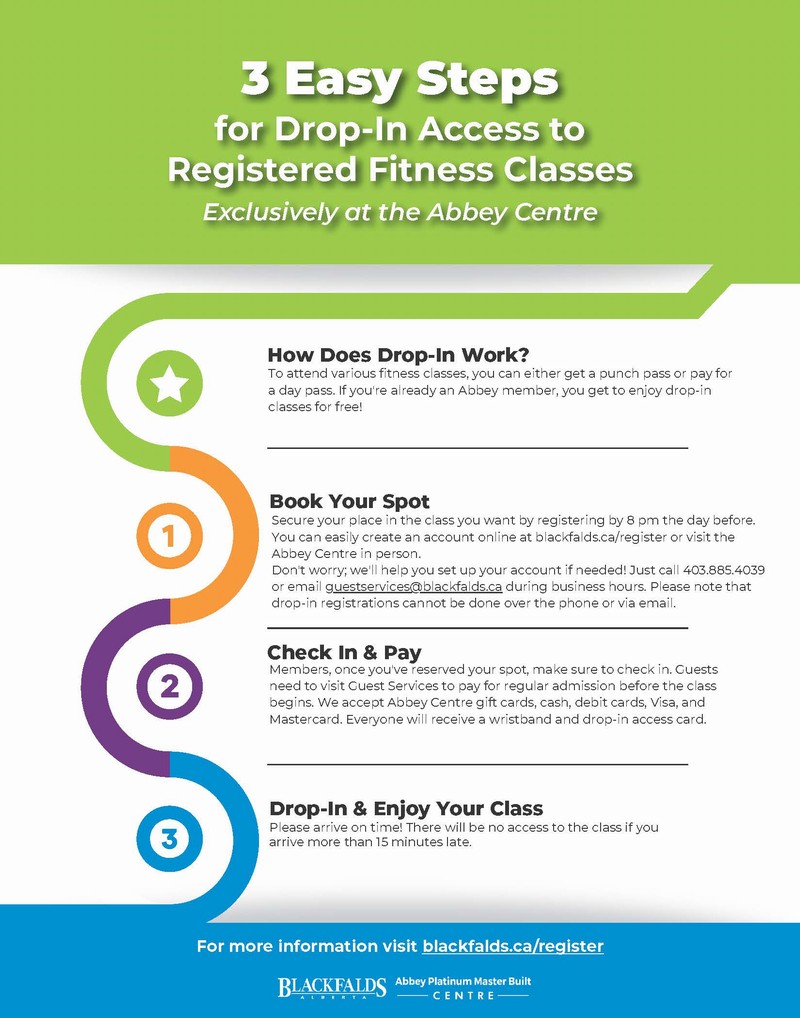 Another Perk For Abbey Centre Members! Members can drop in to any eligible fitness class at no charge! Please follow steps 1 and 2 above to book your spot.